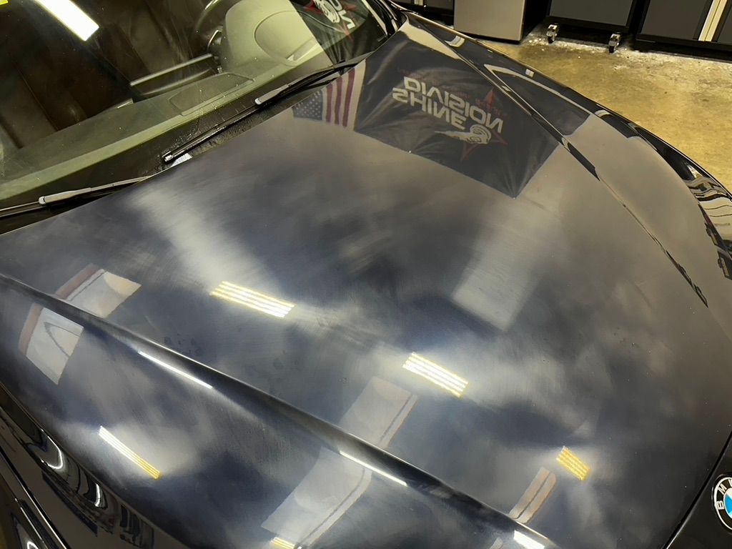 This 2017 BMW 3 Series came in looking tired and heavily worn, especially on the hood. Under normal lighting it didn’t look terrible. But once we pulled it under our correction lights, the true condition appeared: deep swirls, heavy oxidation, random deep scratches, and even names etched into the hood from years of neglect.
